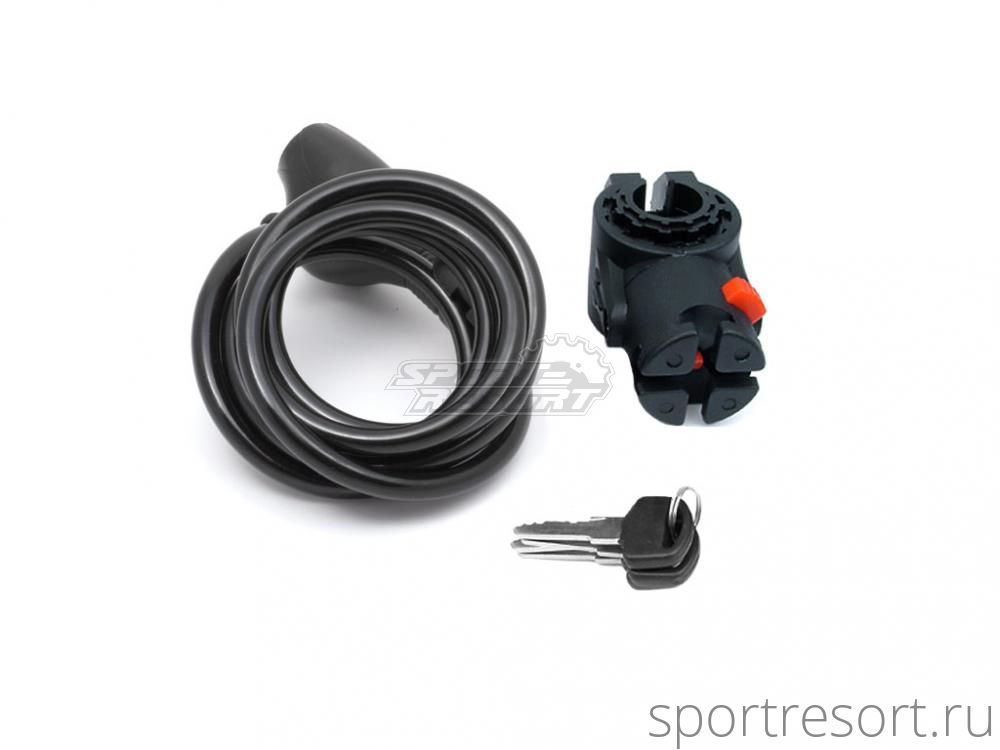 Замок велосипедный, трос 8х1500мм, механизм на ключе. В комплекте крепёж для транспортировки на раме велосипеда. Цвет черный