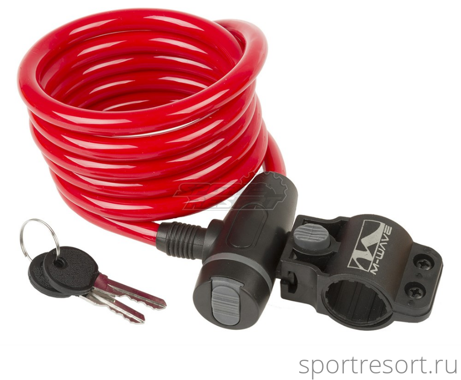 Противоугонный велосипедный замок M-WAVE, прочный стальной трос длиной 1800 мм и толщиной 10 мм, механизм на ключе. В комплекте держатель для замка на подседельный штырь или раму.