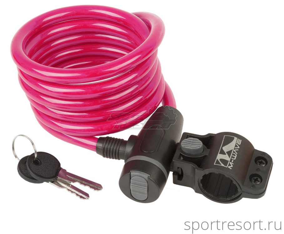 Велозамок M-Wave 10х1800 мм с ключом (розовый)