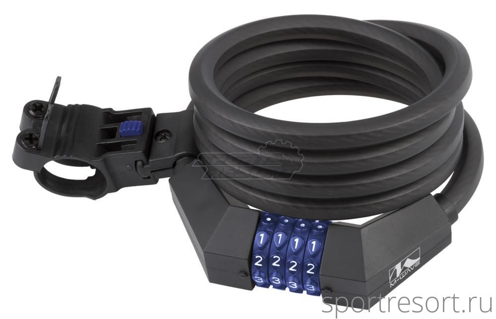 Велозамок M-Wave, стальной тров в пвх оболочке, толщина троса 12 мм, длина 1800 мм, кодовый механизм, крепление на раму.