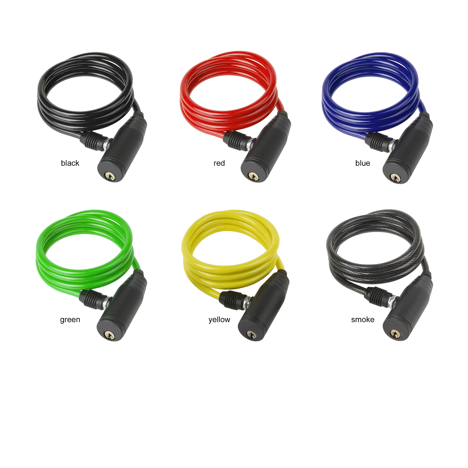 Замок велосипедный, длина 1000 мм, толщина 6 мм, механизм с ключом, с креплением на раму, различные цвета.
