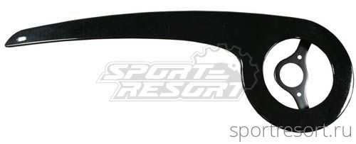 Щиток защитный на цепь и переднюю звезду, максимальный размер звезды 38 зубьев, материал поликарбонат, крепление на каретку и за заднее перо, цвет черный.