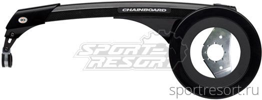 Защита на переднюю звезду и цепь SKS Chainboard, для звезд 42-44 зубьев, полностью закрытого типа, черная, материал пластик-сталь, вес всей конструкции 450 грамм.