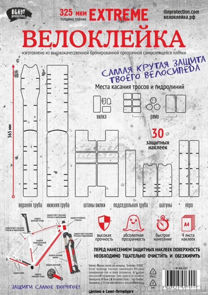 Более надежной защиты Вы не найдете. Бескомпромиссный защитный комплект Велоклейка EXTREME выполнен из сверхтолстой пленки толщиной 325 мкм.В комплект входит 30 защитных элементов: