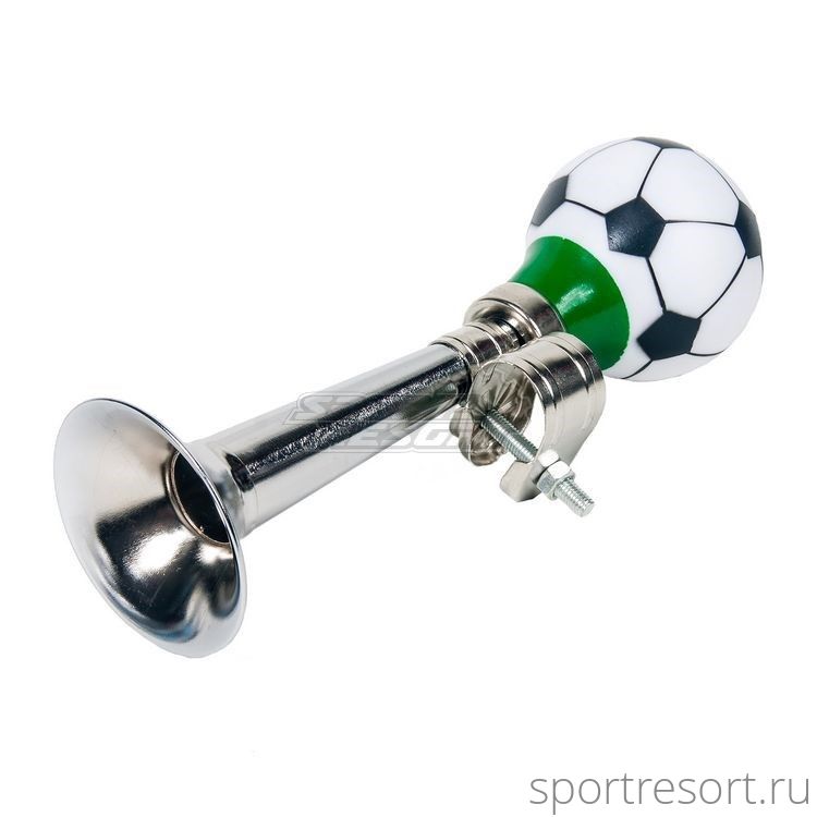 Велосигнал дудка - клаксон, рисунок футбольный мяч. Материал дудки хромированная сталь.