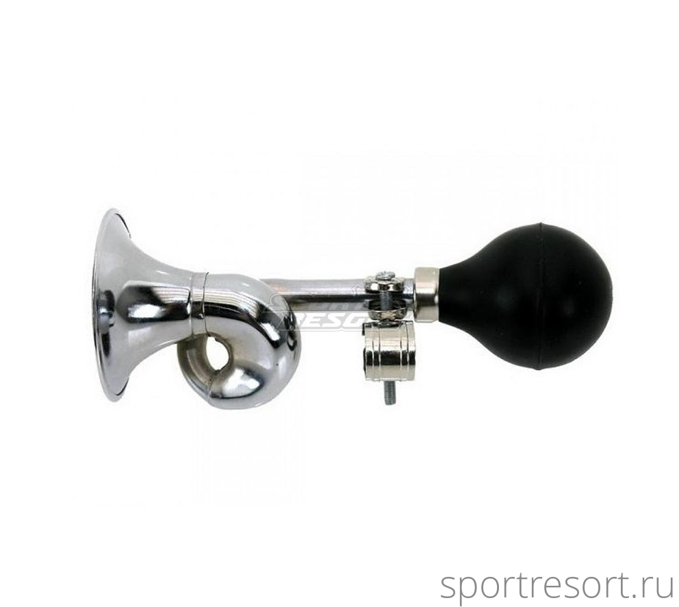 Велосигнал клаксон (пневмогудок) с одной хромированной гнутой дудкой (под ретро стиль), универсальное крепление хомутом.