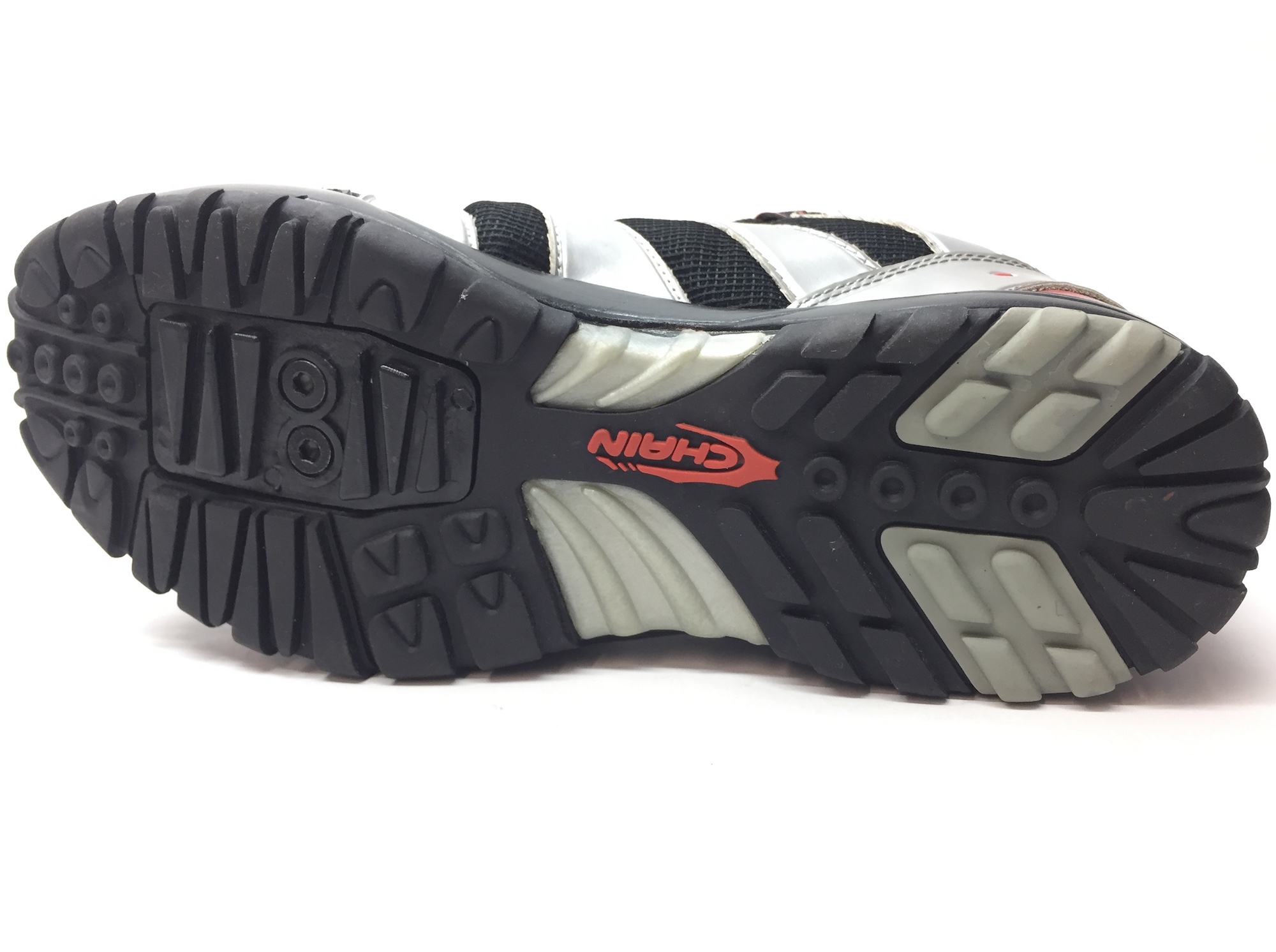 Велотуфли Chainsport MTB Easy Spin Silver/Black, верх из синтетической кожи + сетка, вентилируемая конструкция, жесткая подошва с грунтозацепами, стандарт крепления шипов SPD. Сделано в Италии!