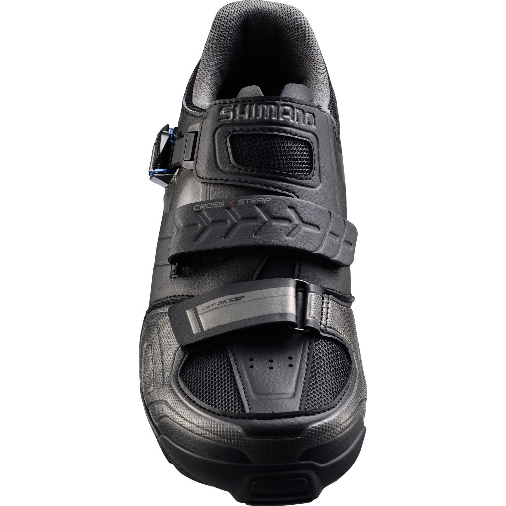 Велотуфли Shimano SH-M089L (цвет Black). Туфли для внедорожних гонок MTB. Универсальность и эффективность на трассе. Жесткая устойчивая к растяжению синтетическая кожа и сетка. Удобная колодка Volume+. Лучше всего сочетаются с PD-M530, PD-M520. Индикатор жесткости 5. Вес 692 г (для 40 размера).