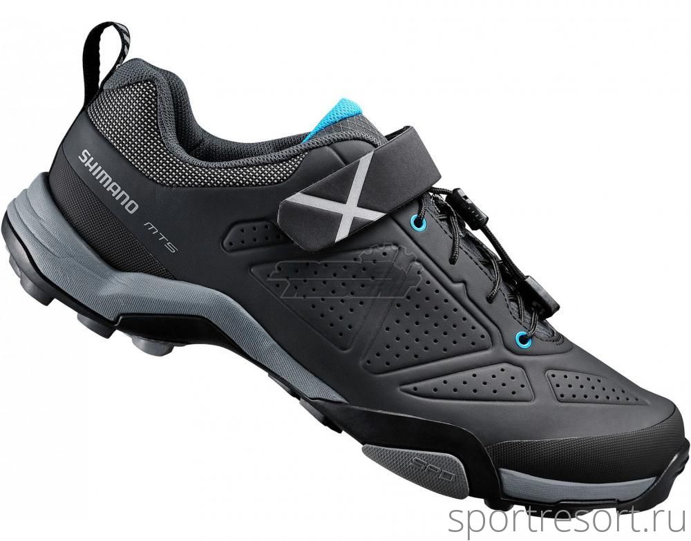 Велоботинки Shimano MTB SH-MT5 черного цвета - универсальные туристические туфли, МТ серия предназначена для поездок по дорогам и бездорожью и подходит для самых разных стилей катания, совместимы со всеми педалями SPD. Накладка подошвы, усиленная стекловолокном, для оптимальной жесткости подошвы. Цельная конструкция верха с идеальным облеганием, повышенной долговечностью и минимальным весом. Система быстрой шнуровки обеспечивает быструю и легкую регулировку. Верхний ремешок для лучшей подгонки по ноге. Индикатор жесткости 4, вес в размере 42- 335 грамм.
