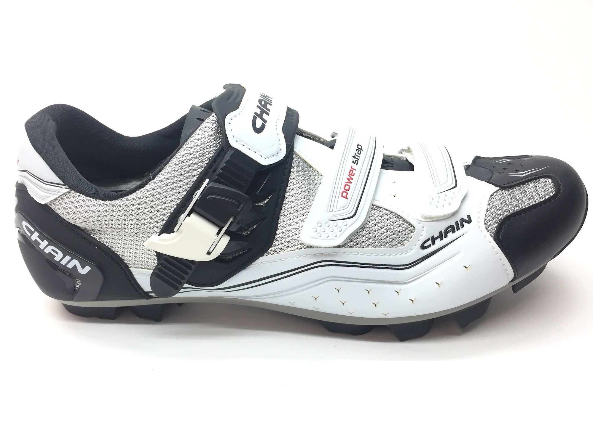 Велотуфли Chainsport MTB Trail White/Black, верх из синтетической кожи с применением сетки, две липучки + бакля для жесткой фиксации, подошва из материала Carbon Reinforcement, большие грунтозацепы. Сделано в Италии!