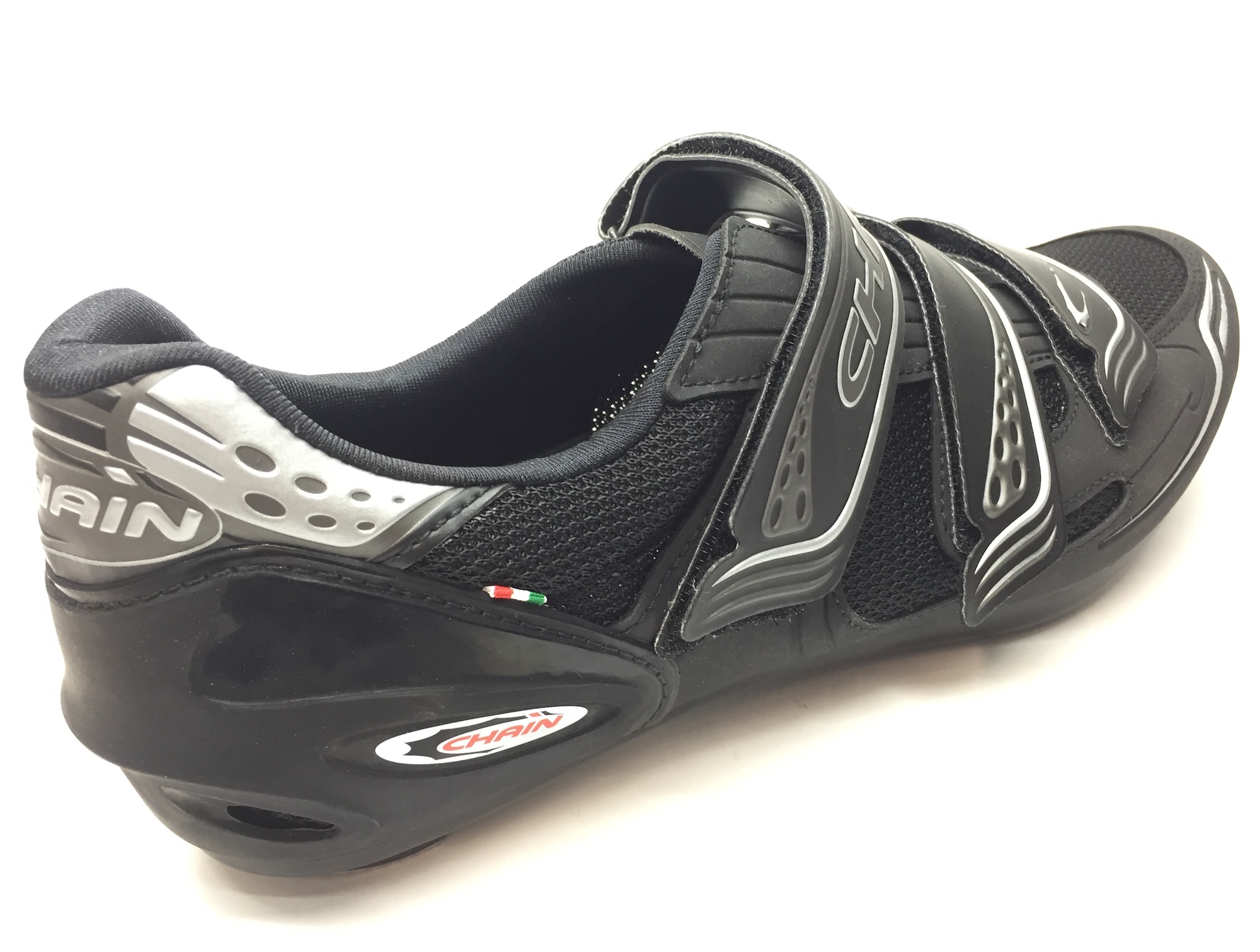 Велотуфли Chainsport Road Elite Black, верх из синтетической кожи, множество вентиляционных каналов, три ремня Velcro, подошва из материала Carbon Reinforcement, стандарт шипов SPD-SL. Сделано в Италии!