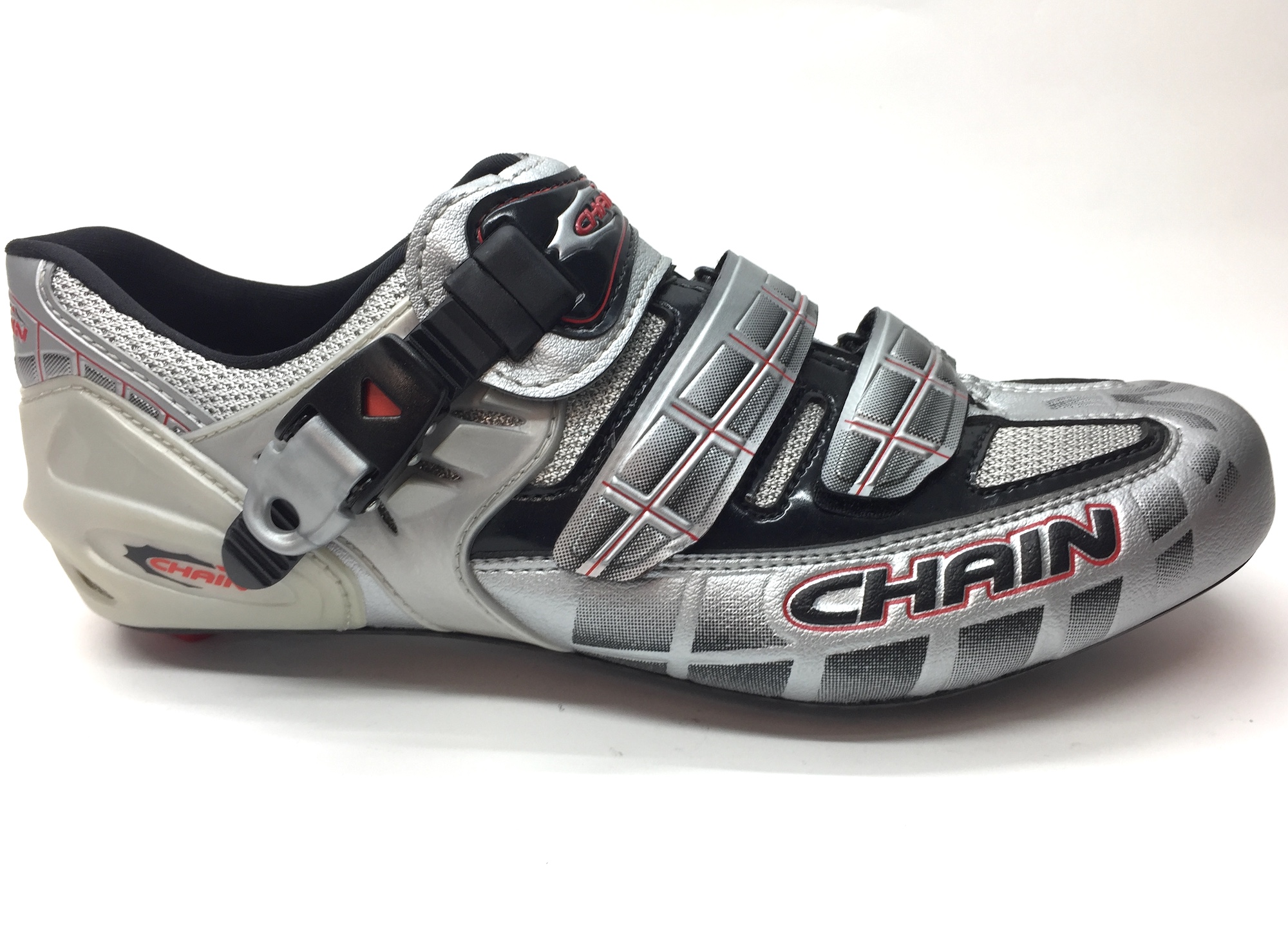 Велотуфли Chainsport Road Nova Silver Carbon, верх из синтетической кожи, множество вентиляционных каналов, два ремешка Velcro + бакля для жесткой фиксации, подошва из карбона, стандарт шипов SPD-SL. Сделано в Италии!