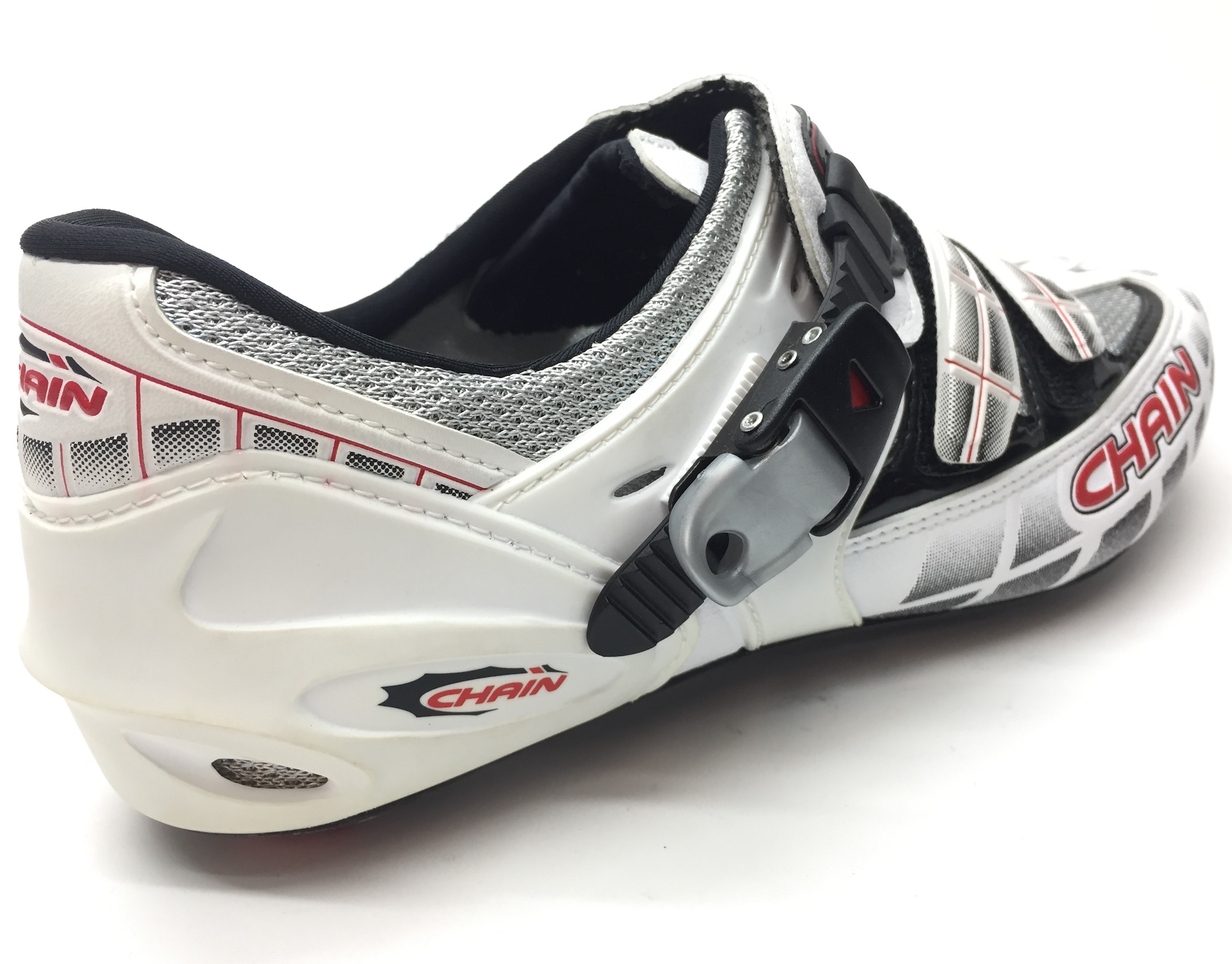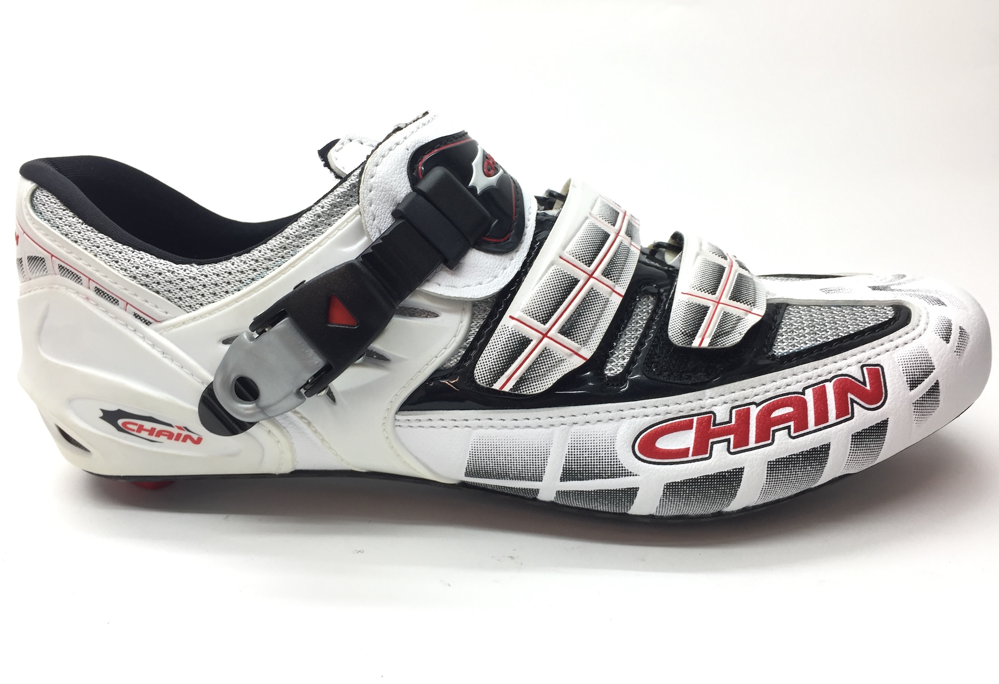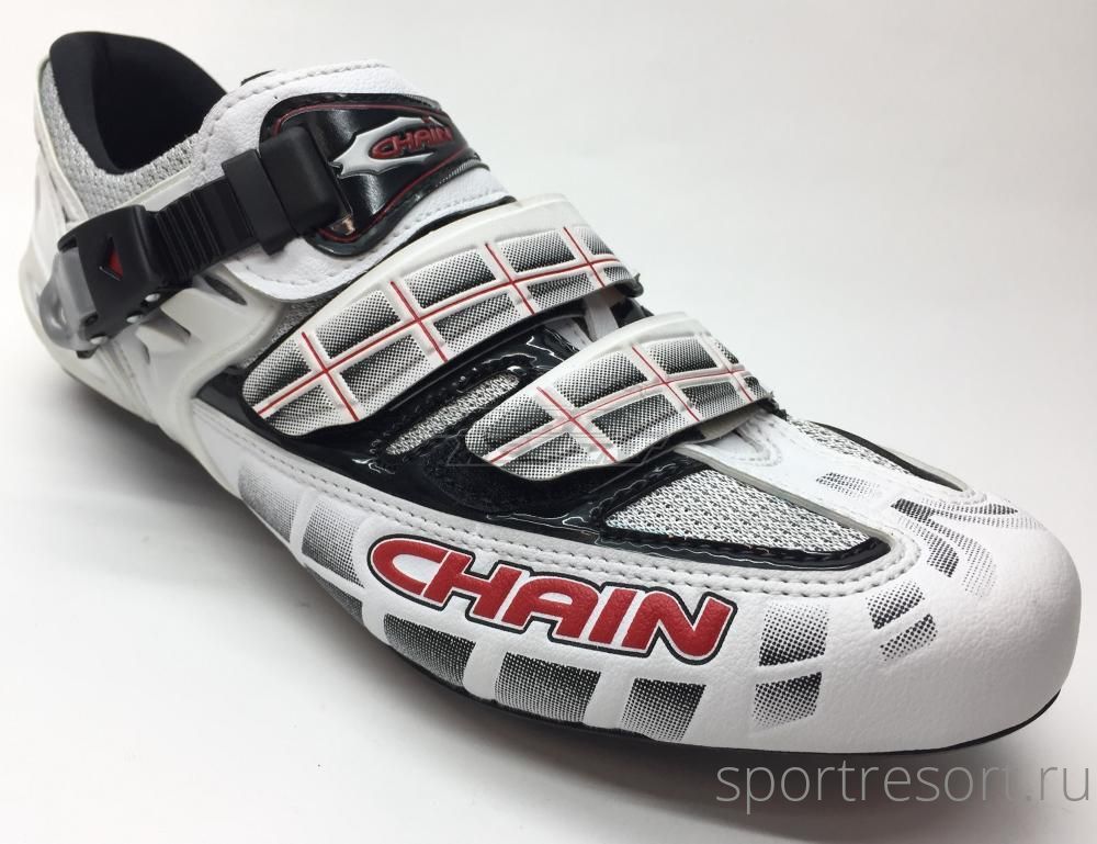 Велотуфли Chainsport Road Nova White Carbon, верх из синтетической кожи, множество вентиляционных каналов, два ремешка Velcro + бакля для жесткой фиксации, подошва из карбона, стандарт шипов SPD-SL. Сделано в Италии!