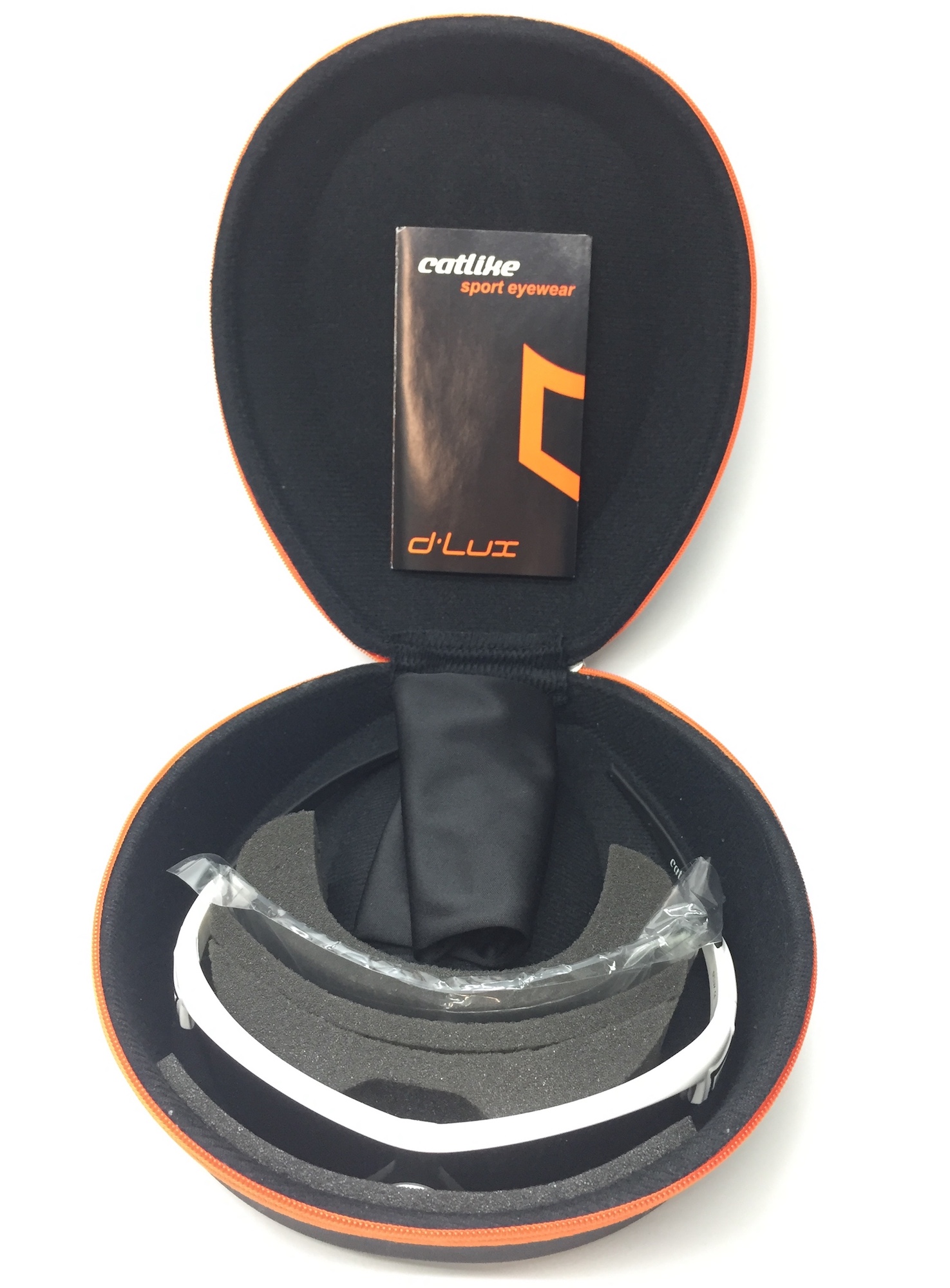 Велосипедные очки Catlike D'Lux White/Black, аэродинамическая форма, регулируемые носовые опоры, 2 сменные линзы (темная и прозрачная), мягкий чехол для хранения и протирки, удобный бокс для хранения. Сделано в Испании!