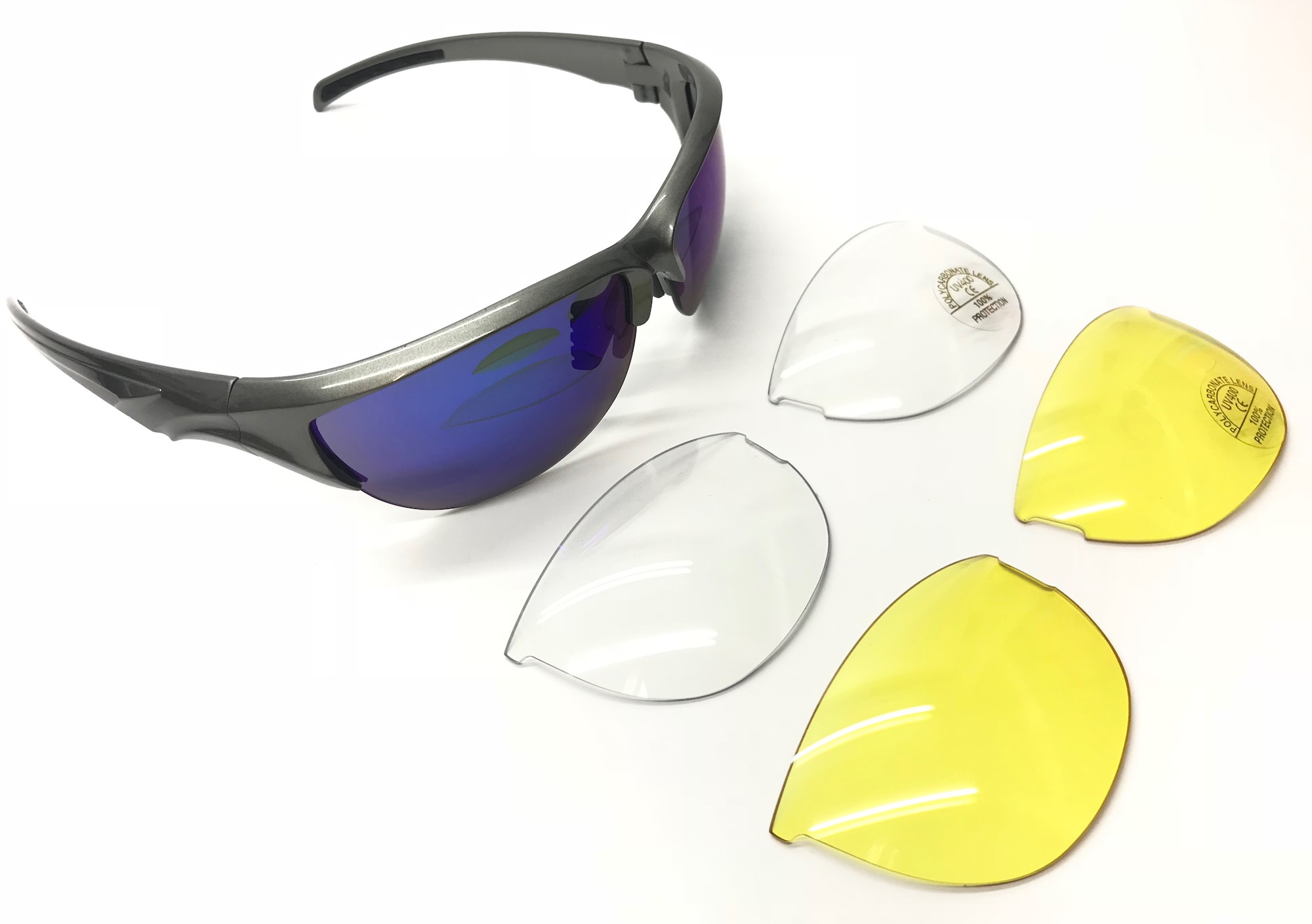 Очки велосипедные KINDAVID S12482. Цвет оправы - серый. Линзы - поликарбонат, UV-защита. Три сменных линзы в комплекте: дымчатый, жёлтый, прозрачный. Силиконовая переносица, силиконовые вставки в дужках.