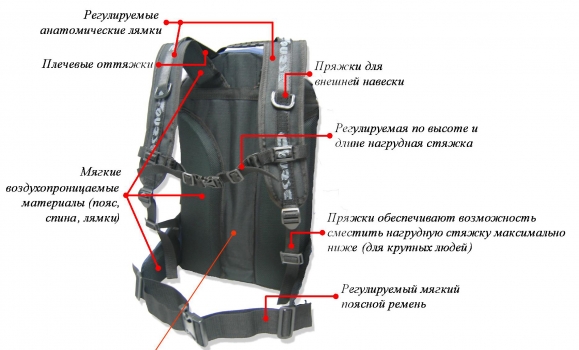 Рюкзак универссльный Course 35 литров, влагостойкие материалы Oxford 600D PU Rip-stop, Polyoxford PVC Rip-stop, Oxford 240D PU, объемная сетка, пенополиуретан, с анатомической алюминиевой пластиной в спине, вентилируемая конструкция спины, мягкие поясные ремни с нагрудными и боковыми стяжками, размер 53 х 32 х 31 см.