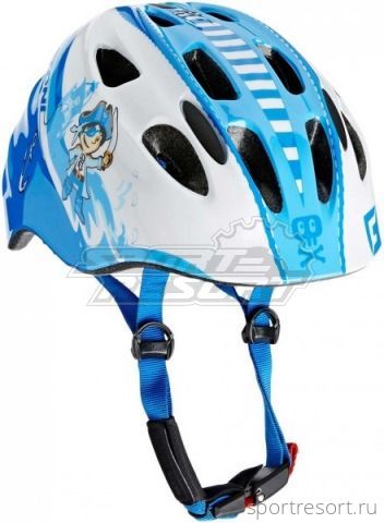 Детский велошлем Cratoni Akino Pirate Blue-White Glossy, размер S (49-53 cm), система быстрой и точной настройки по размеру головы RLS - Rapid Lock System, антимоскитная сетка, множество вентиляционных отверстий, встроенный задний фонарь безопасности, демферные подушки из материала CleanTex, вес 220 грамм. Сделано в Германии!Сертификация по тестам ADAC, Test1.