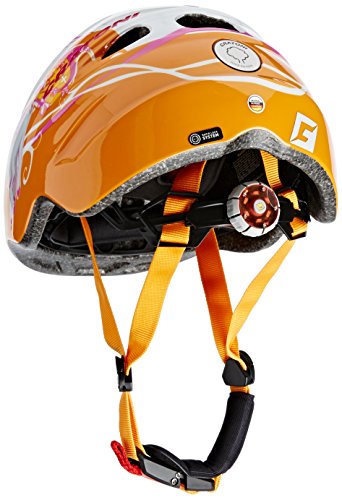 Детский велошлем Cratoni Akino Pony White-Orange Glossy, размер M (53-58 cm), система быстрой и точной настройки по размеру головы RLS - Rapid Lock System, антимоскитная сетка, множество вентиляционных отверстий, встроенный задний фонарь безопасности, демферные подушки из материала CleanTex, вес 220 грамм. Сделано в Германии!Сертификация по тестам ADAC, Test1.