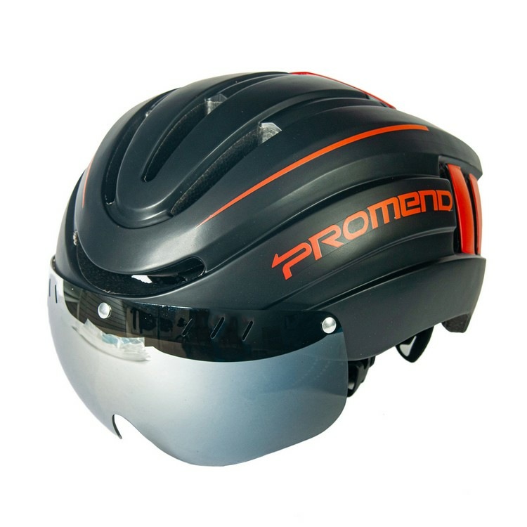 Шлем велосипедный Promend TK-12H15 BLK/RED, с визором, с габаритным световым сигналом, размер 57-62.Световой сигнал имеет 9 режимов работы. Время полной зарядки 1-1,5 часа, заряда аккумулятора хватает минимум на 2.5 часов работы. Он вмонтирован в затылочную часть шлема и находится там, где его видно сильнее всего. За этот счет существенно повышается видимость велосипедиста на дороге и его безопасность.