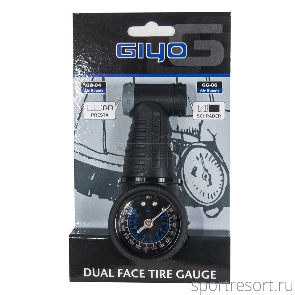 Манометр GIYO GG-04, двухсторонний клапан, для давлений 100 psi и 300 psi, с кнопкой регулировки давления, для авто и вело ниппелей А/V, F/V.