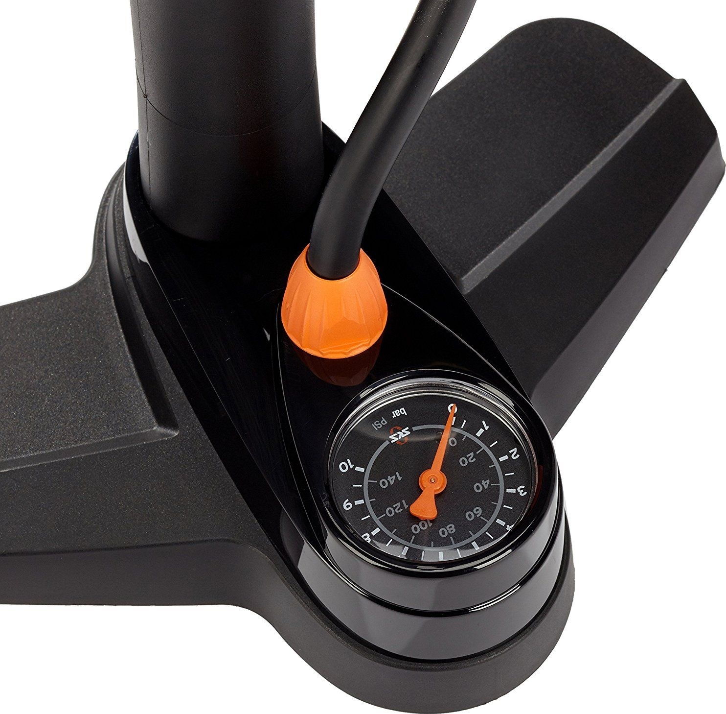 Обновлённая версия прочного и лёгкого пластикового напольного насоса с точным манометром для чёткого контроля давления. Теперь он на 50 мм выше, чем раньше. Шкала давления в Бар и psi. Удобство использования благодаря зарекомендовавшей себя головке SKS MULTI VALVE с фиксатором. Накачивает колёса до 8 Бар / 115 psi.