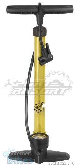 Насос напольный Tour De France, алюминиевый корпус, двойной клапан под авто и вело вентили, большой читаемый манометр в PSI и RAR, максимальное давление 11 атмосфер.