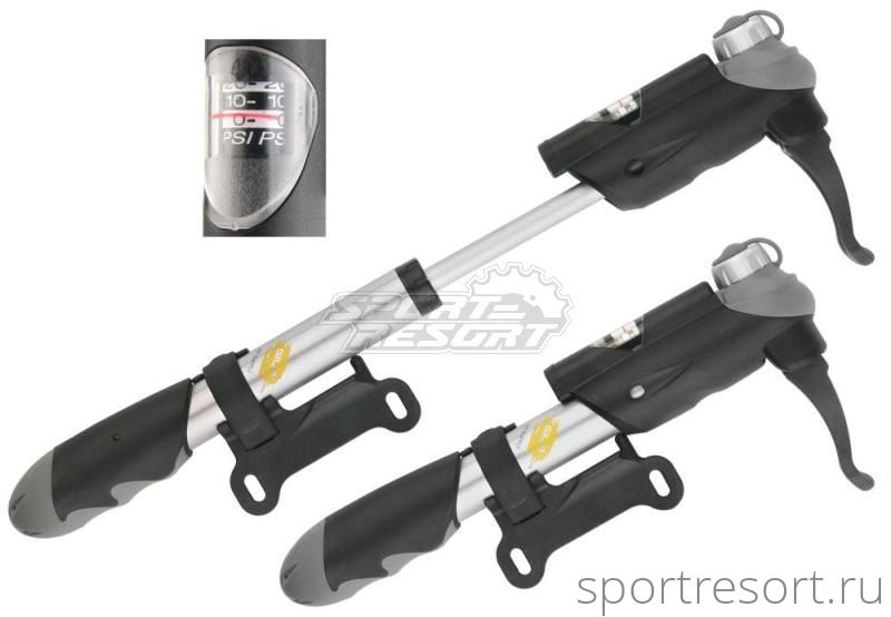 Насос Giyo GP-24D 2 Way Deluxe Mini Pump, система 2-Way, качает в обе стороны, высокая эффективность, алюминиевый корпус AL-6063, длина 24 см, ход поршня 14 см, с крепежом на раму, универсальный ниппель A/V, F/V, c манометром в ручке, анатомическая рукоятка, вес 200 грамм.