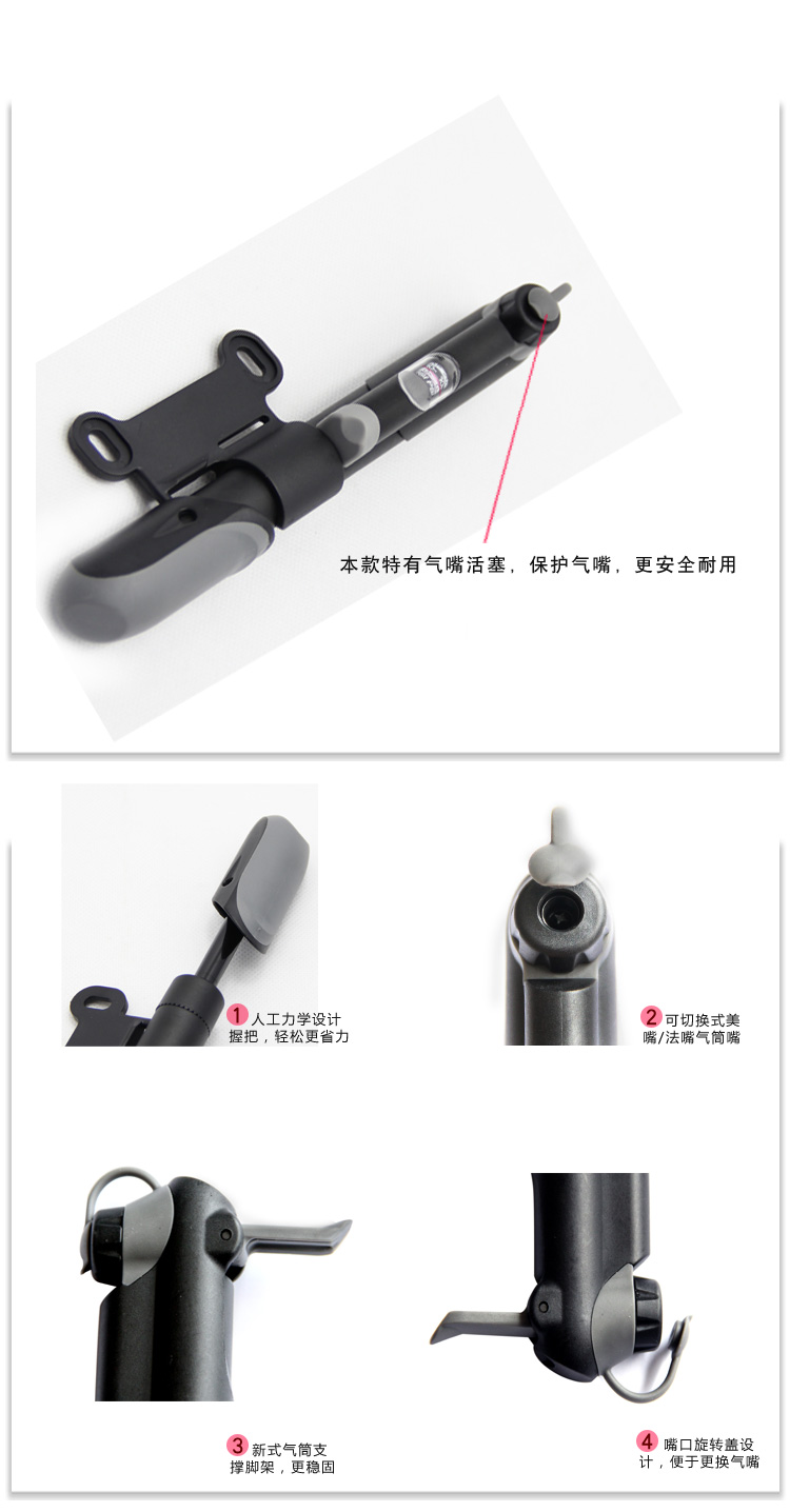 Насос Giyo GP-41S Mini Pump, максимальное давление 100 psi (7 атмосфер) с манометром, под авто и вело ниппеля, Т-образная рукоятка, крепление на раму.