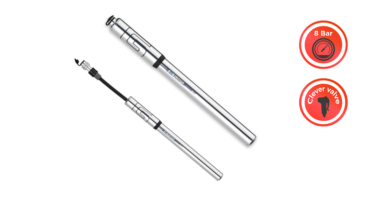Насос Giyo GP-85 Road CNC Mini Pump, алюминиевый корпус, встроеный шланг, универсальная головка под авто и вело вентили, максимальное давление 120 PSI, крепеж на раму.
