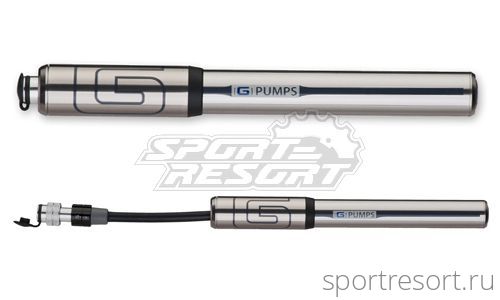 Насос компактный Giyo GP-87 Hybrid CNC Mini Pump, в сложенном состоянии 21 см, ход поршня 13 см, материал алюминий, максимальное давление 100 psi (6,5 атмосфер), с выдвижным шлангом 12 см, головка-автомат А/V, F/V, цвет-титан, вес 105 грамм, крепление на раму в комплекте.