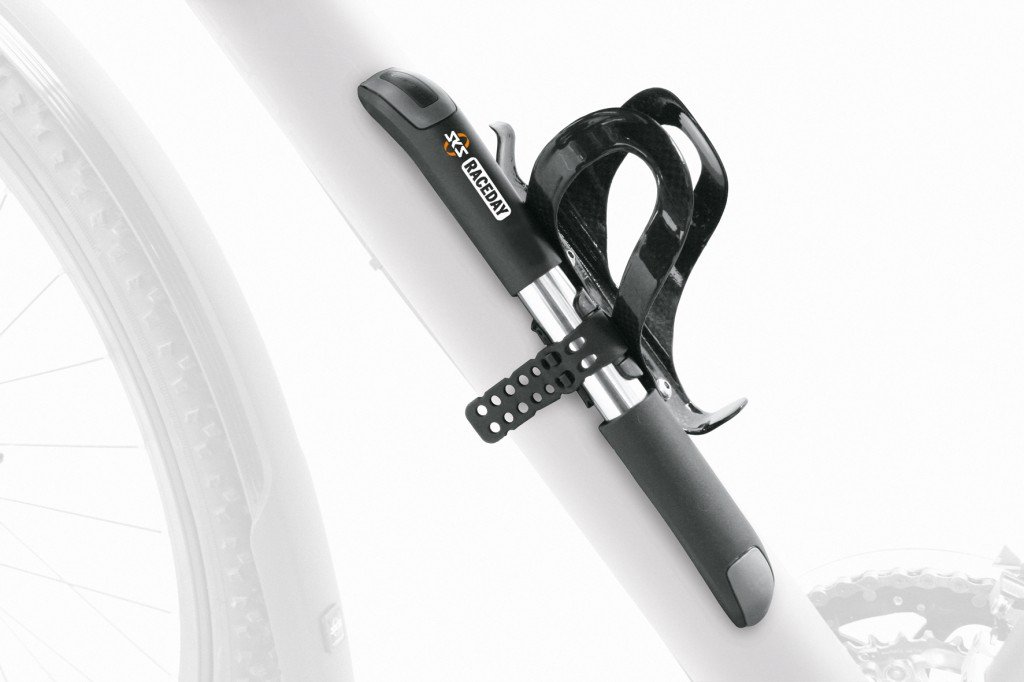 Насос SKS Raceday Mini, корпус из алюминия, длина 262 мм, для любых ниппелей Sclaverand или Presta, максимальное давление 10 атмосфер, вес 101 грамм.