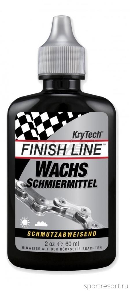 Смазка Finish Line Wax KryTech Bike Lubricant, объем 60 ml. Смазка цепи на восковой основе в виде жидкости, после нанесения все текучие фракции испаряются и на поверхности остается лишь твердая, сухая и тонкая пленка из воска.Данная смазка не содержит масляных или жирных примесей, что предоставляет отличную защиту цепи от грязи и пыли. Благодаря добавлению примесей Молибдена, удалось увеличить интервал между смазыванием и добиться лучших скользящих характеристик.