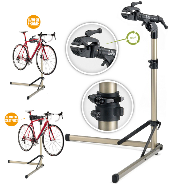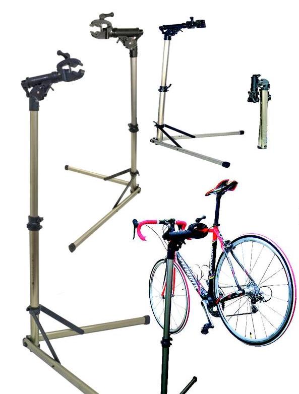 Стенд ремонтный Bike Hand YС-100BH, складной, регулировки по высоте и наклон, все прижимные механизмы из прочного пластика (нейлон-кратон), в сложенном состоянии очень компактен, трубы из алюминия, регулируемая высота от 100 до 150 см. Идеальный вариант для дома или небольшой мастерской.
