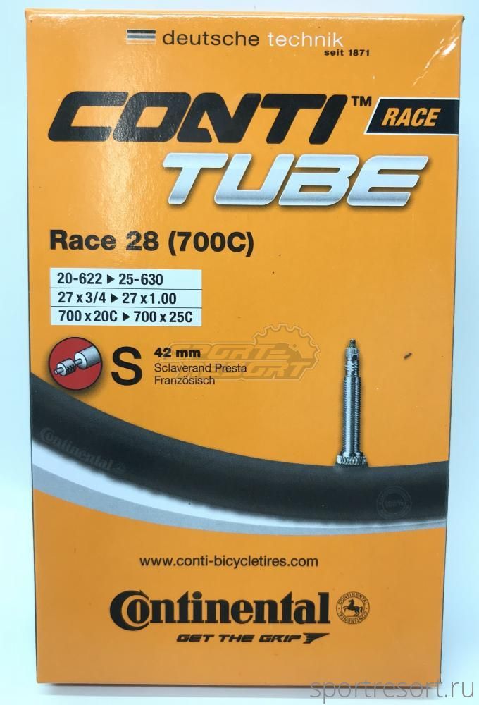 Велокамера 28 дюймов Continental Race, размер 700х18/25C, велосипедный ниппель F/V 42 мм, вес 100 грамм.Характеристики