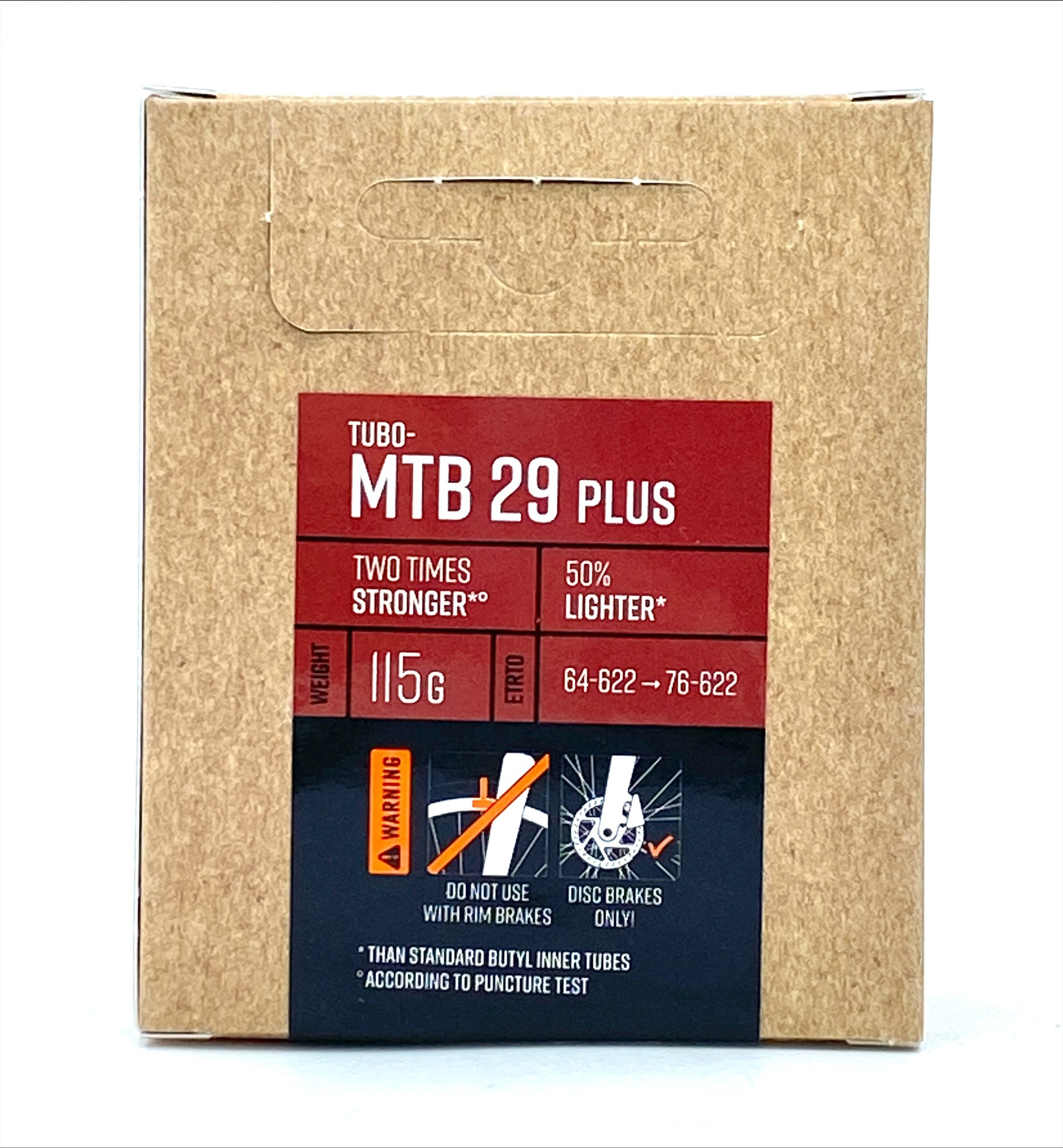 Велокамера Tubo MTB 29 Plus, вес 115 грамм, для горного велосипеда с максимально возможной защитой от проколов. Подходит для использования с колесами 29 и шириной резины 2.5"-3.0". Велосипедный ниппель 42 мм. Материал: инновационный материал ТПУ (термопластик полиуритан эластамер).Подходит для использования только с дисковыми тормозами.