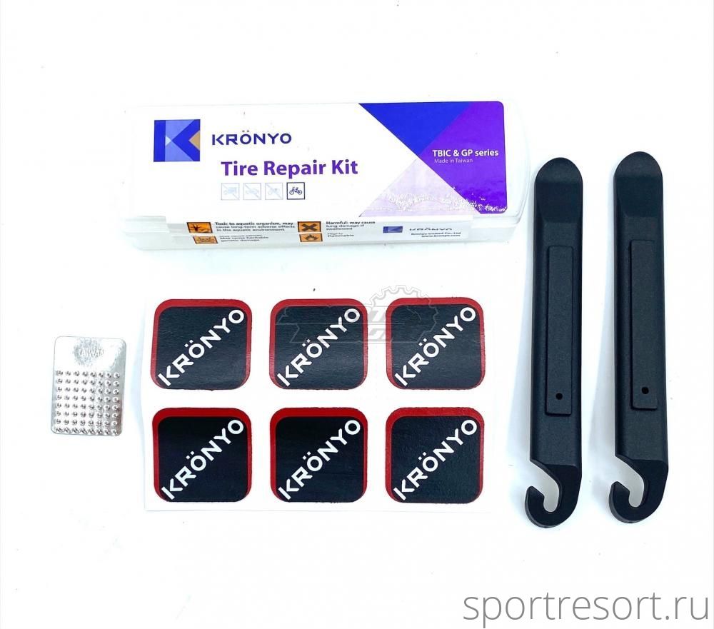 Велоаптечка для камер Kronyo включает в себя 6 самоклеящихся заплаток, шкурку для зачистки области прокола и две пластиковые монтажки для бортировки покрышки.