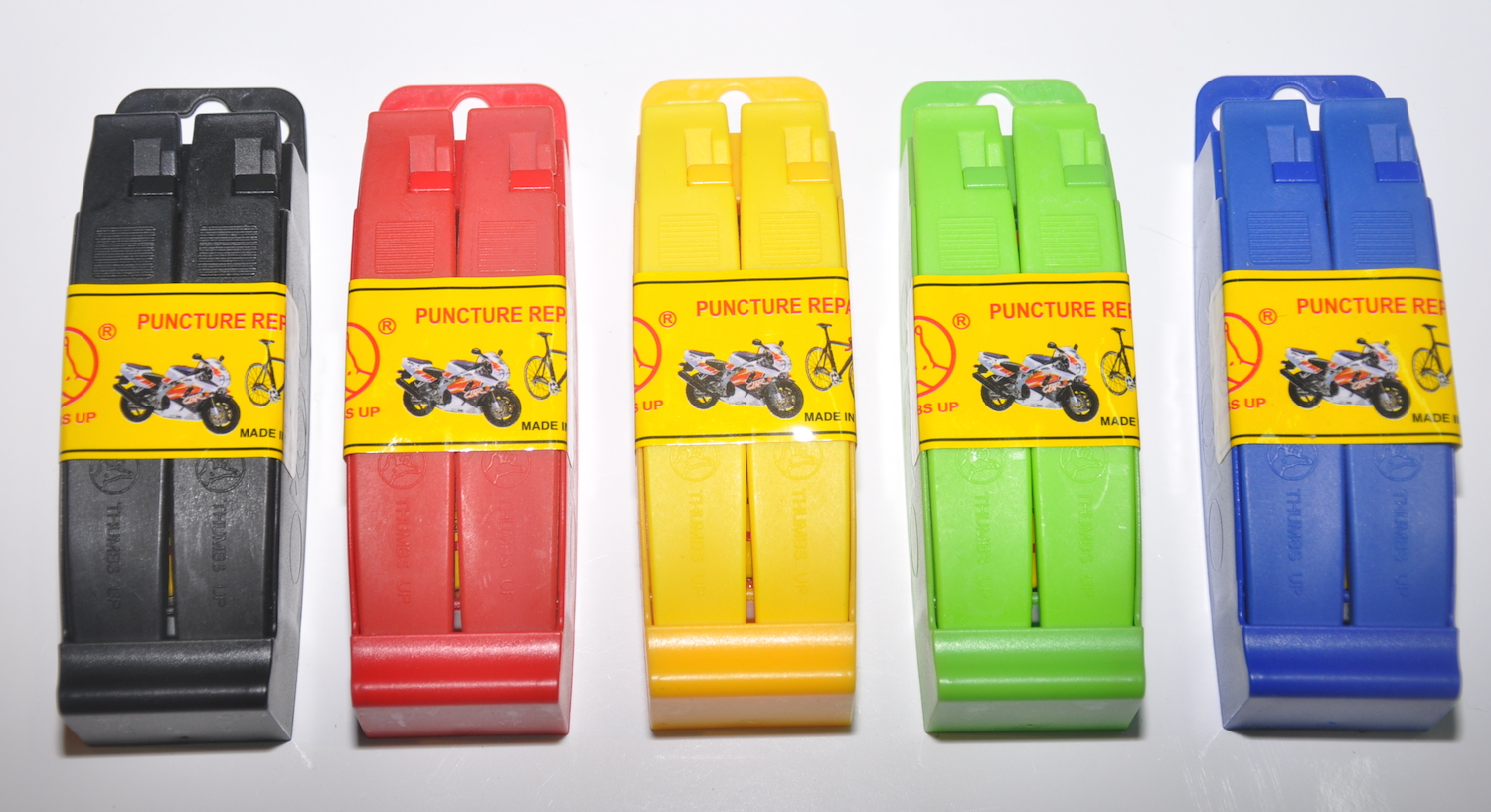 Велоаптечка YP3207D, 6 заплаток: ø15mm -3шт, ø20mm-3шт, клей 5 мл, 2 монтажки, зачистка, в пластиковой разноцветной коробочке. Компактный бокс к крышкой из двух монтажек, заплатки различного размера и формы, все это поможет справиться с проколами в любой ситуации.
