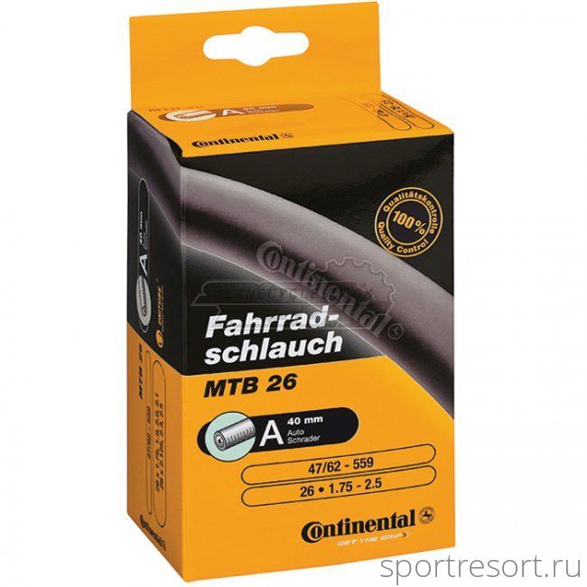 Велосипедная камера 26 дюймов Continental, размер 26х1.75-2.5 (47/62-559), автомобильный ниппель А/V 40 мм, вес 205 грамм.Характеристики