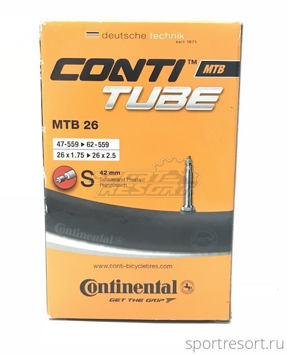 Камера для велосипедов 26 дюймов Continental, размер 26х1.75-2.5 (47/62-559), велосипедный ниппель F/V 42 мм, вес 195 грамм.Характеристики