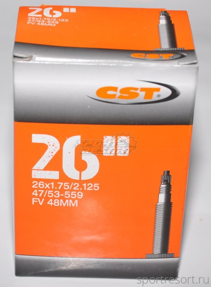 Велокамера 26 дюймов CST 26x1.75/2.125, велосипедный ниппель F/V 48 мм, вес 190 грамм.