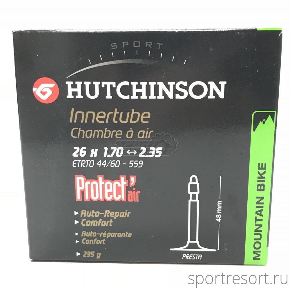 Велосипедная камера 26 дюймов Hutchinson Protect Air, размер 26х1.7/2.35 (44/60-559) под велосипедный ниппель F/V 48 мм, с антипрокольным герметиком внутри, вес 235 грамм.Характеристики