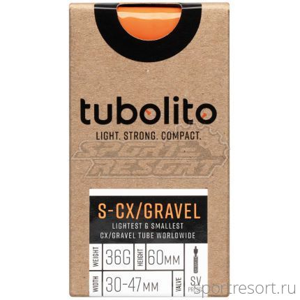 S-Tubo-CX/Gravel-All-SV60 ультра легкая камера TUBOLITO (вес 36 г) для грэвела с максимально возможной защитой от проколов. Подходит для использования с резиной шириной 28 x 1.2 → 28 x 1.8 мм. Велосипедный ниппель 60 мм. Материал: инновационный материал ТПУ (термопластик полиуритан эластомер). Подходит для использования с дисковыми и ободными тормозами.Характеристики