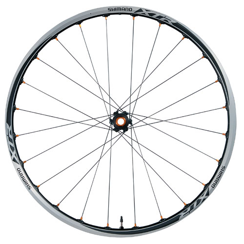 Колеса Shimano XTR WH-M988, переднее и заднее, Ось E-thru 15мм/QR, крепление тормозного диска только под C.Lock.Переднее колесо: Бескамерные Scandium обода (UST) (use 21C rim tape) 24 спицы. 15 mm E-Thru ось Размер: 26" (559-21) Рекомендуемый размер резины: 26x1.90-2.50 Ширина обода: 22/26.4mm Данные о втулке: 100mm (15mm through axle) Крепление диска Center Lock Вес 759g