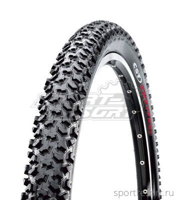 Велосипедная покрышка 26 дюймов CST CHEYENNE, размер 26х2.1 (54-559), стальной корд, вес 680 грамм. Агрессивный и направленный протектор отлично подойдет под катание в стиле All-Mountain и кросс-кантри, так же, покрышка отлично подойдет для катания в плохие погодные условия, так как обладает отличной очищаемостью, а цепкий протектор будет эффективен даже в грязи.Характеристики