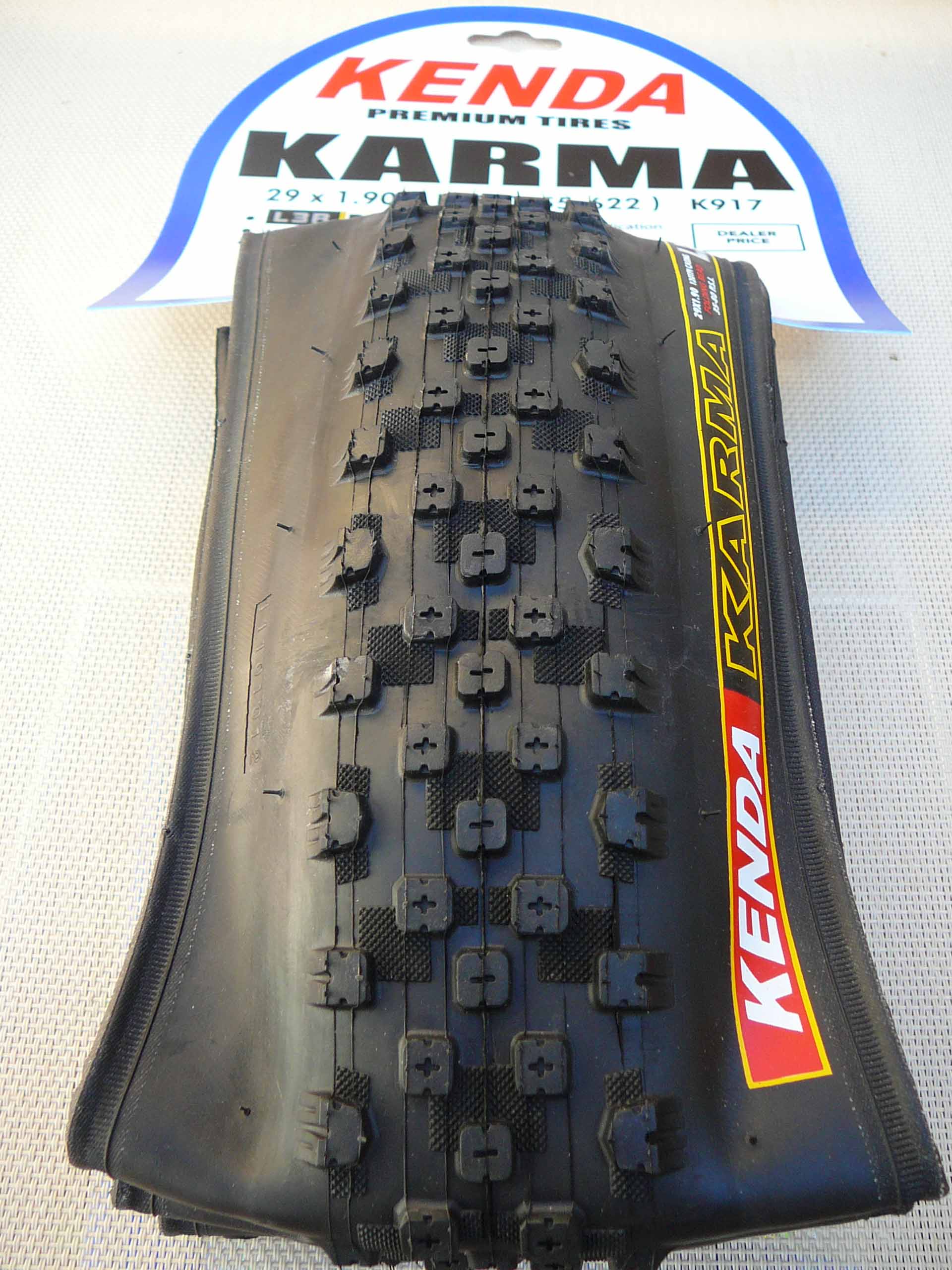 Покрышка для велосипедов 29 дюймов Kenda KARMA K-917, размер 29x1.90 (50-622), кевлар, технология KV, компаунд L3R PRO, 60 TPI, рекомендуемое давление 35-80 psi, вес 540 грамм. Для марафонов и гонок XC.Покрышка, чья эффективность доказана многочисленными велогонщиками и их победами на протяжении многих лет. Кроме того, именно эту покрышку использовали члены олимпийской сборной США образца 2005 года. Кроме того, в активе “Karma” – множество побед в национальном чемпионате NORBA и бесчисленное количество подиумов на региональных гонках. Несомненно, это отличная покрышка.