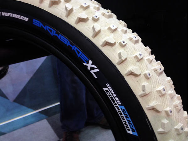 Шипованная покрышка для велосипедов Fatbike VeeTire SNOWSHOW XL, 240 шипов, размер 26x4.80, кевлар, SILICA COMPAUND двойной компаунд PSC Compound 50 A, Silica Compound 57 A, 120 TPI, Tubeless Ready, рекомендуемое давление 8-20 PSI (0.6-1.4bar), цвет белый, вес 1450 грамм. Покрышка для велосипедов FATBIKE с колесами 26 дюймов.Характеристики