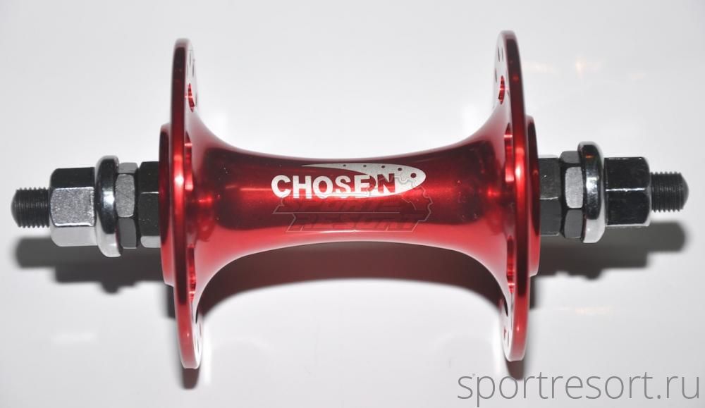 Втулка передняя Chosen A-3633BN, для TRACK, FIX, Road, красная, на гайках М9, 32 отверстия, 2 промышленных подшипника, ось cr-mo, вес 285 грамм (с гайками и осью).Характеристики