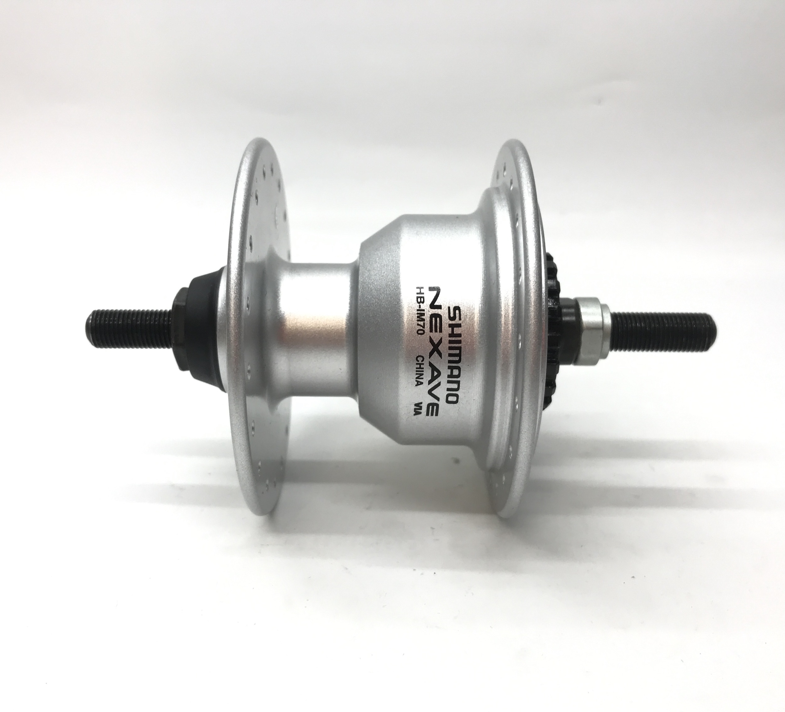 Втулка передняя Shimano HB-IM70, 36 отверстий, под роллерный тормоз, с гайками М9, ширина по осям (OLD) 100 мм, цвет серебро.Характеристики