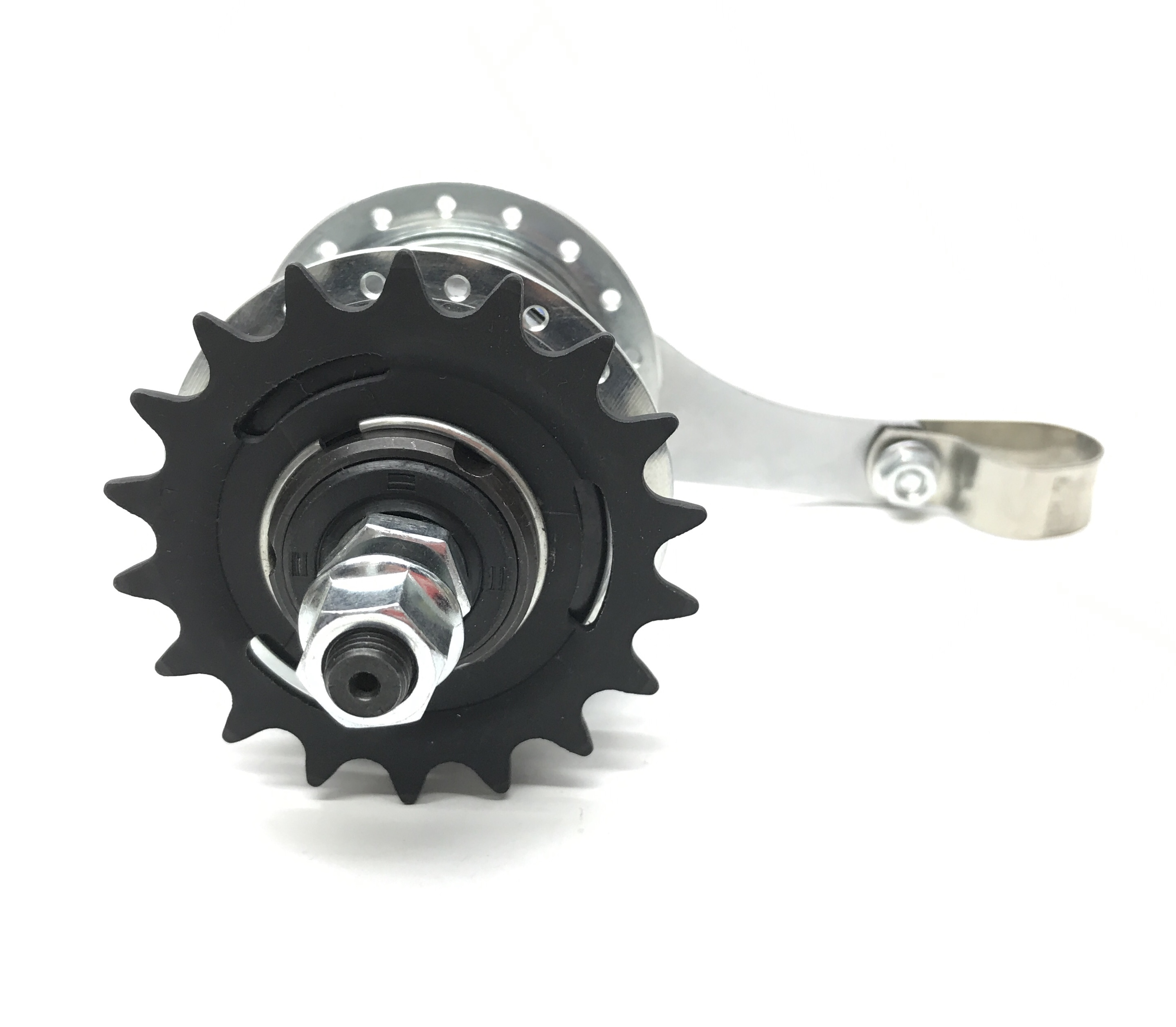 Втулка задняя Quando KT-325R, внутренний механизм на 2 скорости (переключается поворотом педалей на 45-60 градусов назад), 36 отверстий, ось cr-mo 3/8" общей длиной 155 мм, ширина по осям 112 мм, в комплекте звезда 18Т, Ration: 1:1.3, ножной тормоз (поворотом на 60-75 градусов назад), хомут для тормоза в комплекте, гайки в комплекте, вес 1385 грамм (полный комплект).Характеристики