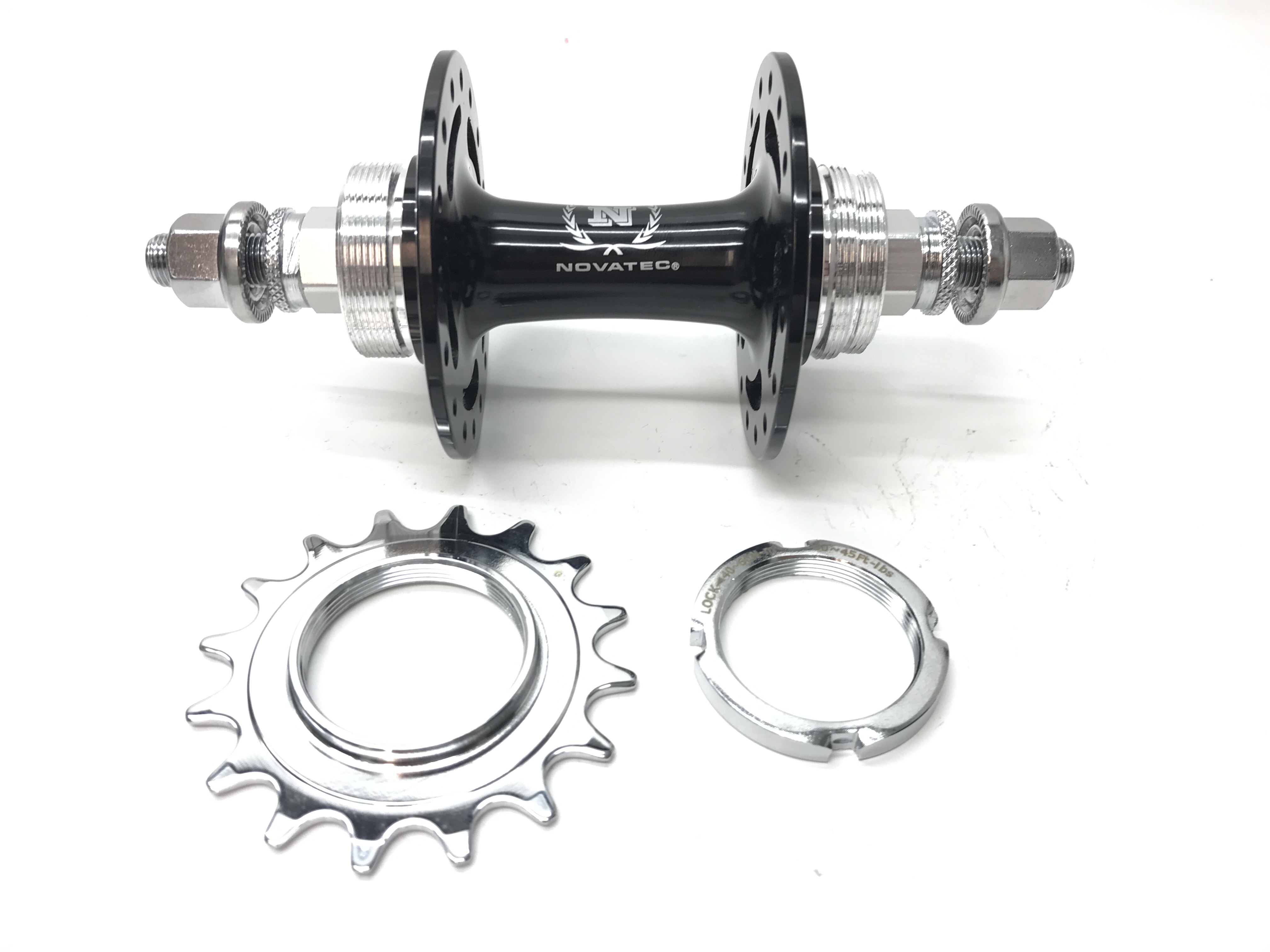 Втулка задняя Novatec A166SBT, на 32 спицы, корпус из алюминия, промышленные подшипники, ось 120х10 мм, в комплекте звезда 16T и стопорная гайка Lock Ring, крепление на гайках. Для велосипедов TRACK, FIXIE, SINGLE SPEED. Вес 220 грамм.Характеристики